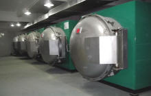 圖為真空乾燥車間,與傳統空氣乾燥相比,真空乾燥可將殼模生產週期從七天以上降至1天以內。並且真空爐內能夠充分有效地乾燥型殼中的硅溶膠及水份,提高型殼強度和 鑄件品質。