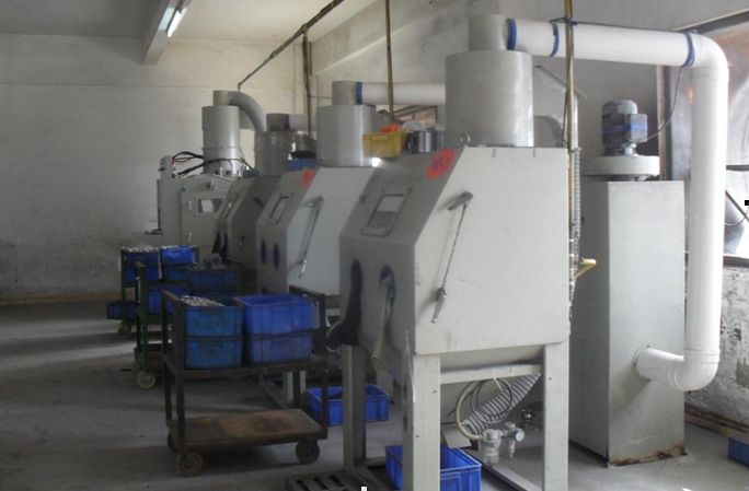 手動底壓噴砂機,噴氧化鋁作業,目前有3臺手動噴砂機。