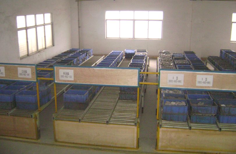 毛胚超級市場,表面處理完成後並經過外觀全檢驗,放行入庫到毛胚超級市場,與加工成品超級市場執行拉動式看板管理。