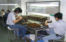 圖為修蠟、組裝作業,對蠟件進行去毛邊和連接組裝作業 |